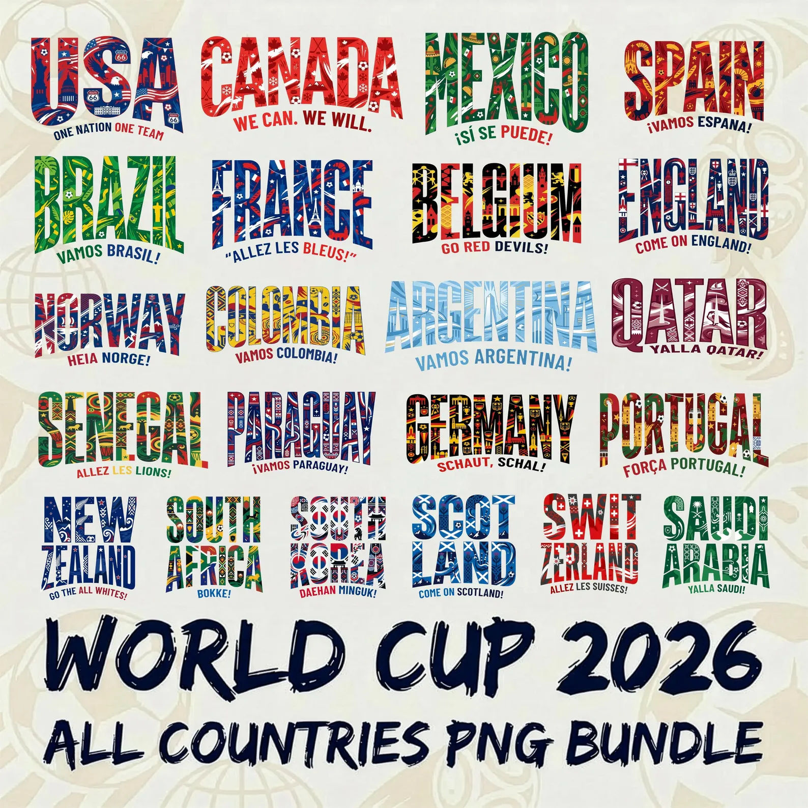Franela personalizada con un vibrante diseño tipográfico cargado de identidad cultural y la frase motivadora “¡Sí se puede!”. Contamos con diseños exclusivos para todos los países participantes en el Mundial 2026, confeccionados con alta calidad para que apoyes a tu selección con el mejor estilo de Sublimados Vizcainnova.